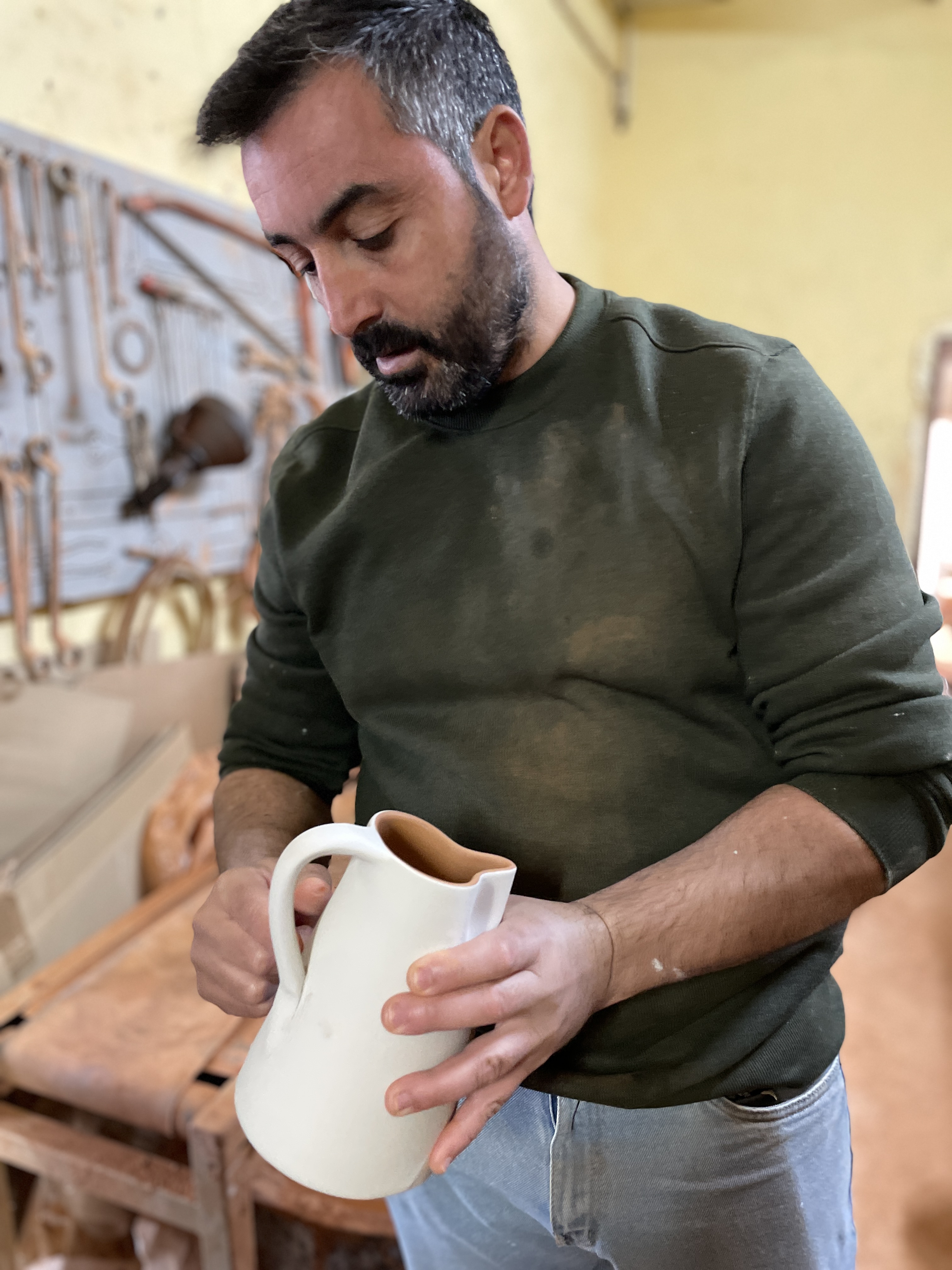 Each piece passes through the skilled hands of the potter.